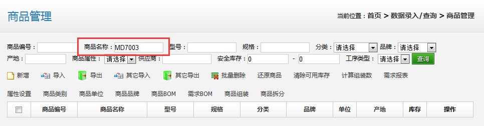 查詢“商品管理”的列表,也沒(méi)有該商品:
