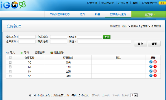,該倉(cāng)庫(kù)信息恢復(fù)到倉(cāng)庫(kù)列表中;操作刪除