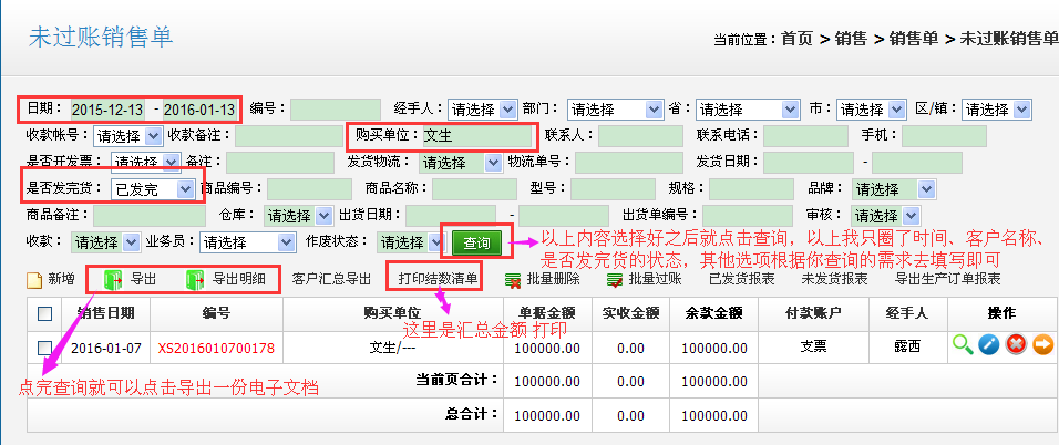 問題:如何查詢未過賬銷售單列表單據(jù)的導(dǎo)入導(dǎo)出以及月結(jié)清單
