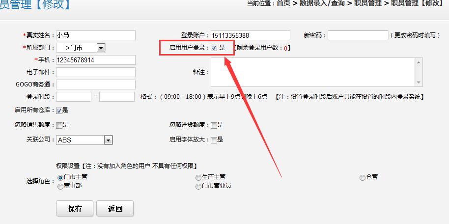 那是因為主賬號操作員,在給職員開通子賬號的時候,需要勾選了“啟用用戶登錄”,該職員即可登錄安購系統(tǒng)。
